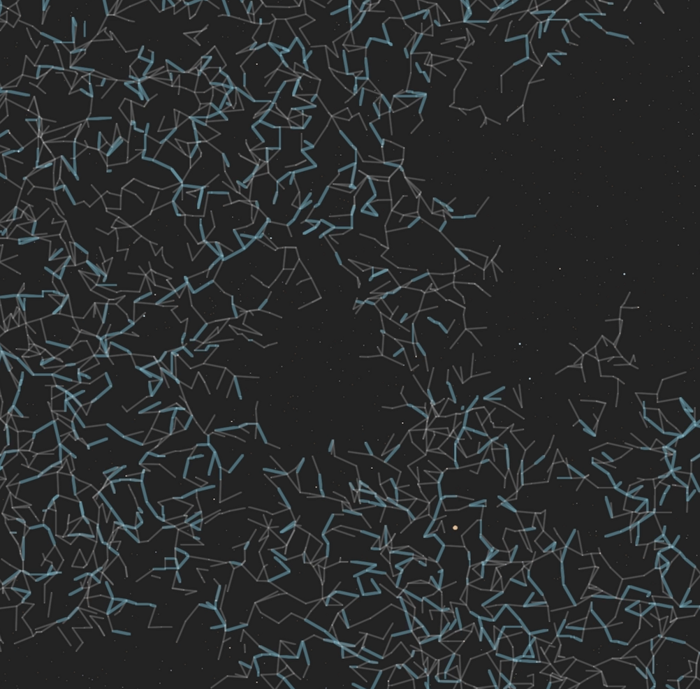Unsurprisingly, my first pass at this, while fine for a test map of 400x300 light years with a few hundred stars, took literal minutes once I tried to expand to something like 500x500. Remember, everything grows quadratically. A 400x300 map is 120,000 square light years, but a 500x500 map is 250,000—more than double! Going to 1000x1000 would quadruple that again to a million square light years. The number of stars and connections explodes, and the calculations along with them.